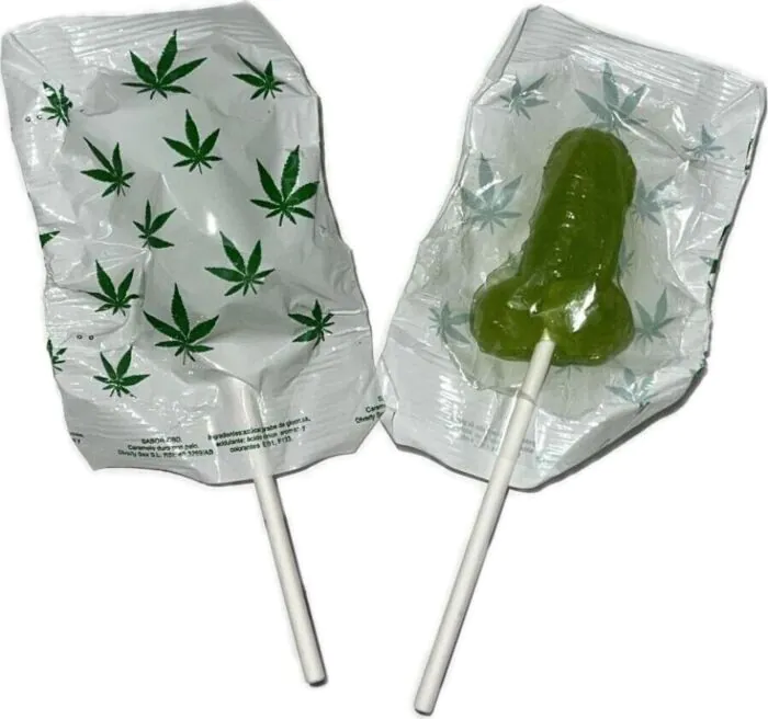 Es una piruleta de caramelo con forma de pene y aroma a marihuana pensada como detalle divertido para fiestas y regalos de broma. No es un juguete erótico funcional, es un caramelo con un formato provocador: llama la atención en despedidas de soltero/a, cumpleaños o en mesas dulces temáticas.