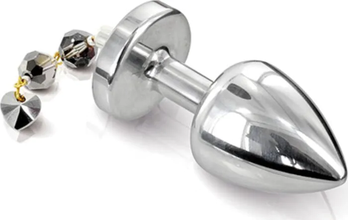 Plug anal de acero inoxidable con acabado pulido y un colgante tipo joya en el extremo exterior. Su forma cónica facilita la inserción y el material permite juego de temperatura: lo puedes enfriar en la nevera o calentar al baño María para sensaciones diferentes. Perfecto si buscas un plug rígido y elegante con un toque ornamental.