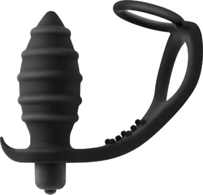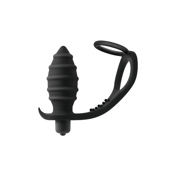 Throttle es un plug anal con vibración que incorpora una anilla doble para pene y testículos: estimula el perineo mientras las anillas presionan y ayudan a prolongar la erección. Pensado para quien quiere estimulación simultánea y una colocación ajustable gracias a las anillas elásticas. Funciona con pila AAA incluida; usa lubricante a base de agua.
