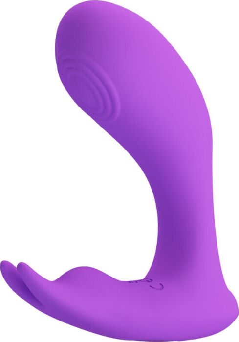Disfruta de la estimulación simultánea del clítoris y punto G con el vibrador Idabelle de Pretty Love, que cuenta con control remoto y función de memoria para personalizar tu placer.