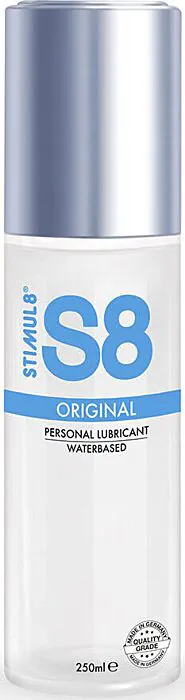 Lubricante a base de agua STIMUL8 S8 pensado para quienes buscan una lubricación segura y de larga duración sin químicos agresivos. Fórmula inodora y apta para pieles sensibles, compatible con la mayoría de juguetes y preservativos. Buena opción si quieres un lubricante sencillo, transparente y homologado según normativa UE.