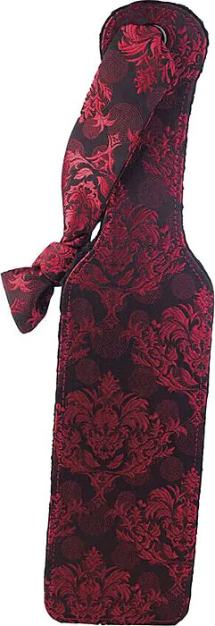 Esta es una paleta para juego de impacto y dominación fabricada en poliéster y pensada para quien quiere versatilidad en una sola herramienta. Gracias a su doble cara tienes dos sensaciones distintas sin cambiar de utensilio: el lado afelpado acaricia y calma, perfecto para preparar o moderar; el lado firme da golpes más punzantes y controlados cuando quieres subir la intensidad. La doble costura refuerza las zonas de unión, así que soporta el uso continuado mejor que palas sin remates reforzados. La tela roja y negra del diseñador le da presencia en la escena y refuerza la experiencia estética del dominio.