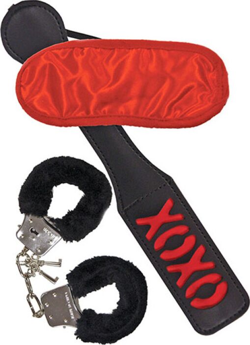 Sumérgete en un juego de roles apasionante con el kit Sweet Punishment. Este set incluye esposas de peluche negro que añaden un toque suave a tus sesiones, un antifaz rojo para aumentar la intriga y un paddle con la impresión XOXO que hará que cada golpe sea un recordatorio de tu entrega. Además, el contrato de sumiso y dominante te ayuda a establecer las reglas del juego y a explorar tus deseos más profundos.