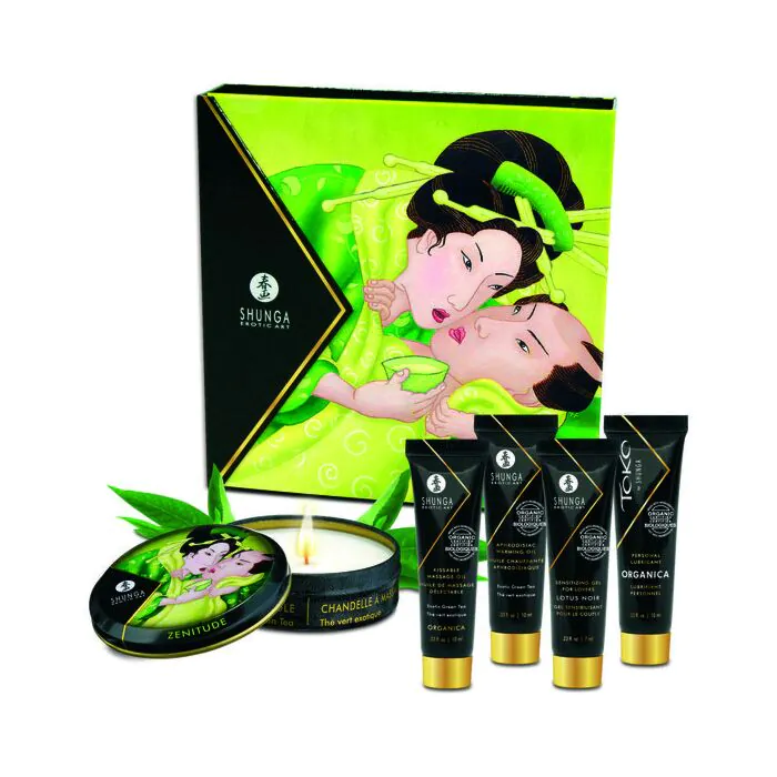 ¡Déjate seducir por la sensualidad y el misterio de la colección "Secretos de una Geisha Té Verde" de Shunga! Este exquisito kit de cosmética erótica te invita a explorar los placeres más íntimos y sensuales en pareja, combinando aromas y sabores afrodisíacos para estimular todos tus sentidos.