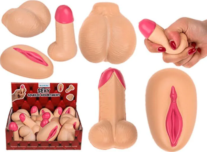 Se trata de un surtido de figuras antiestrés con forma de penes, vulvas y testículos —estrujables— presentadas en pack de 12 (4 de cada). Su punto fuerte es la mezcla de realismo en el molde y un tamaño reducido que las hace muy manejables y fáciles de repartir en fiestas, despedidas o como regalo de broma. No son juguetes sexuales diseñados para inserción; su función principal es aliviar tensiones con un toque humorístico.