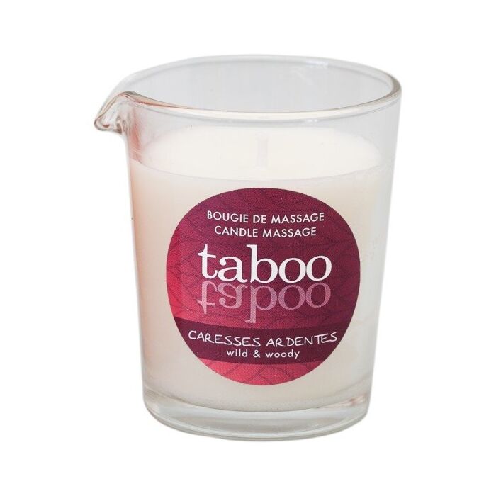 Descubre el placer de los masajes eróticos con la vela de masaje Taboo "Caresses Ardentes" para él con aroma a helecho, una experiencia que despertará tus sentidos y avivará la pasión en tus momentos íntimos.