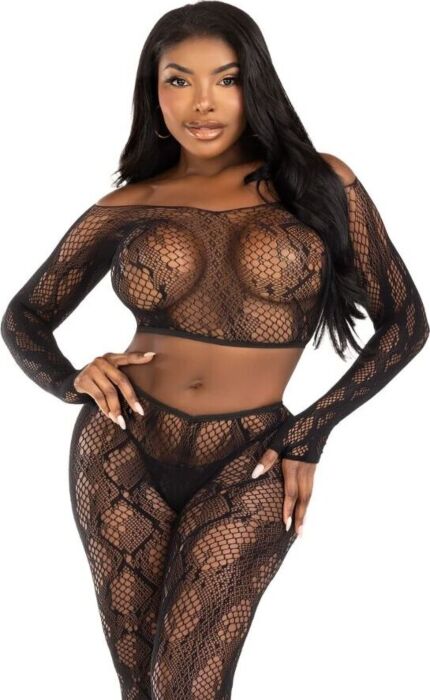 Conjunto de encaje Leg Avenue 89373 con estampado sensual
