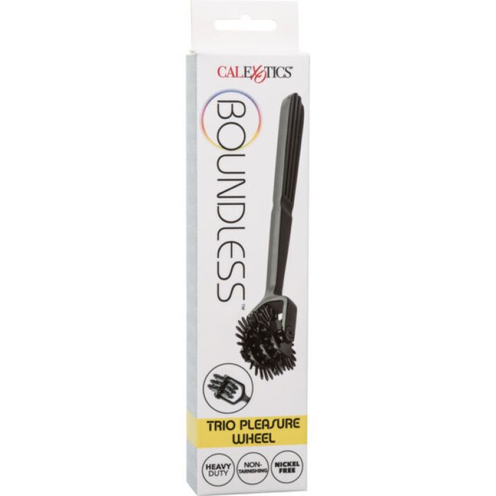 Disfruta de un placer escalofriante sin fin con el atrevido Trio de Ruedas de Placer Boundless. La Rueda de Placer provocadora está diseñada para emocionar con tres pinwheels rotatorios de 22 puntos, hardware de alta resistencia y material que no se oxida. El material de alta resistencia y que no se oxida está hecho para durar para un tiempo de juego interminable. Con cada rodar sobre tu piel deseosa, esta apasionada rueda te emocionará, excitará y elevará cada momento íntimo.