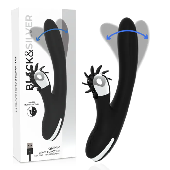 Te lo explico como si estuvieras en la tienda: este es un vibrador de la gama GRIMM WAVE FUNCTION de BLACK&SILVER pensado para estimular el punto G y el clítoris a la vez. Su sistema “wave” reproduce un movimiento ondulatorio parecido al de los dedos mientras incorpora vibración potente, por lo que ofrece combinaciones versátiles para quienes buscan más que una vibración estándar. El cuerpo está recubierto de silicona súper suave con núcleo en ABS hipoalergénico, pensado para un tacto agradable y seguro.