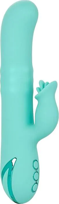 El Bel Air Bombshell de CALEXOTICS es un vibrador tipo conejito recargable pensado para quienes buscan estimulación simultánea de punto G y clítoris. teaser triple y tres motores independientes con rotación del eje, controles sencillos y función de bloqueo para viajar. Apto para duchas y cuerpo de silicona hipoalergénica; ofrece varias combinaciones de vibración y rotación para personalizar tu sesión.